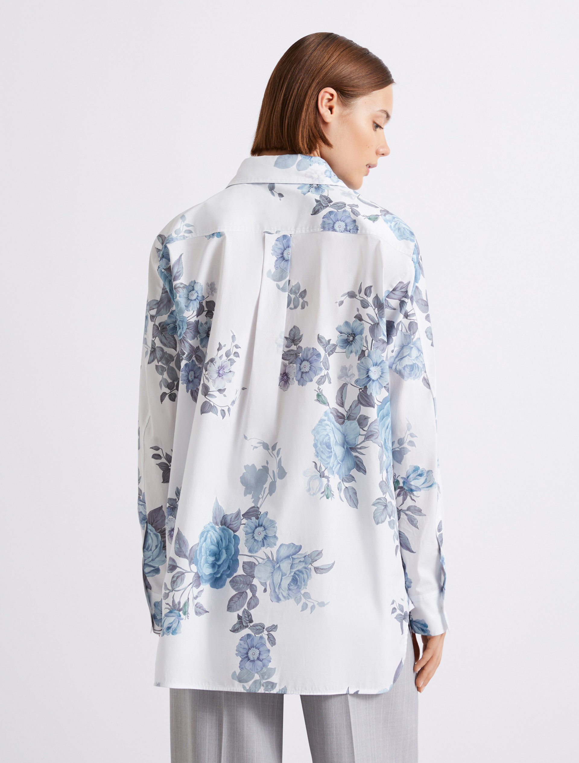 Obszerna koszula z elastycznej popeliny - JASNONIEBIESKI - Marella - 4