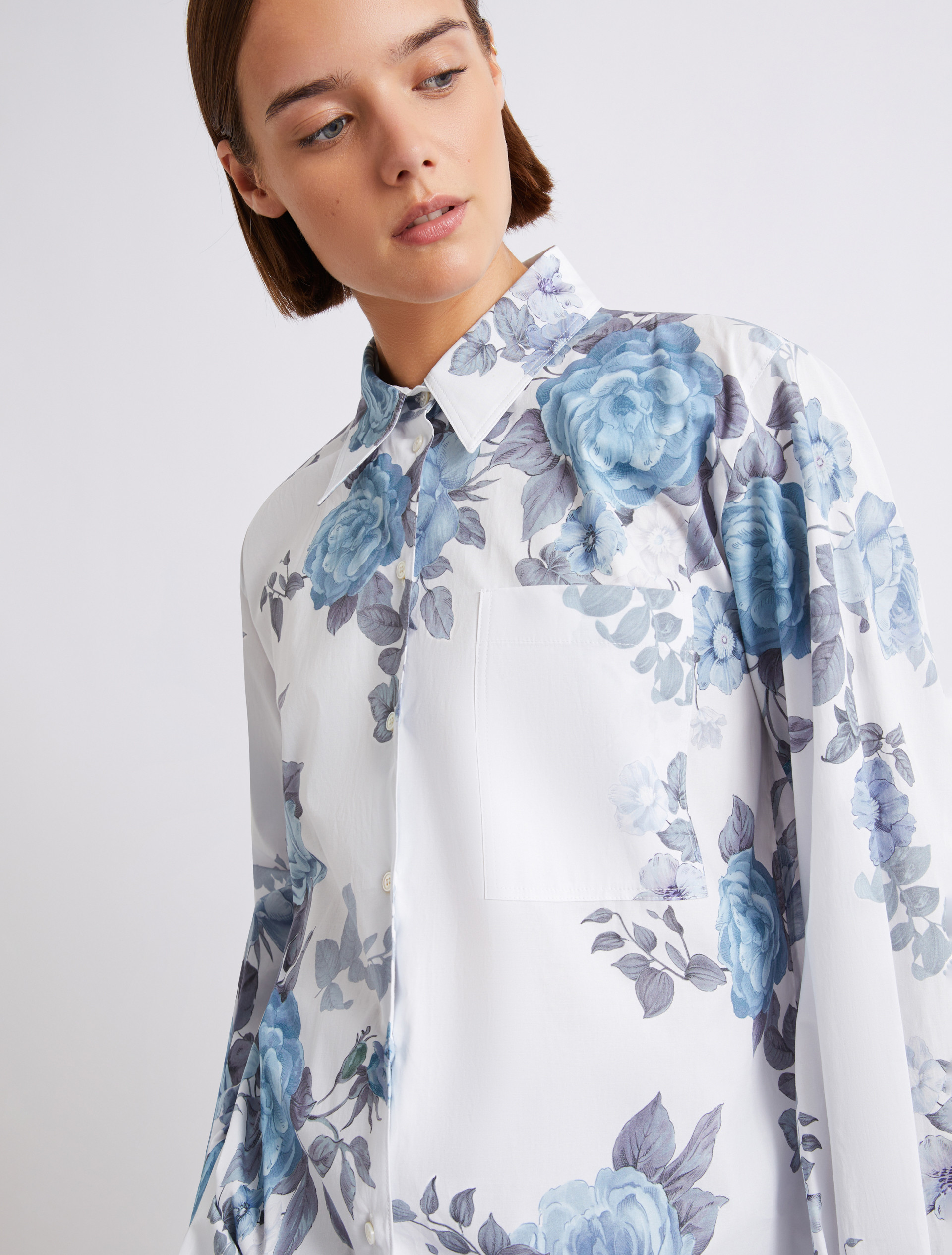 Obszerna koszula z elastycznej popeliny - JASNONIEBIESKI - Marella - 5