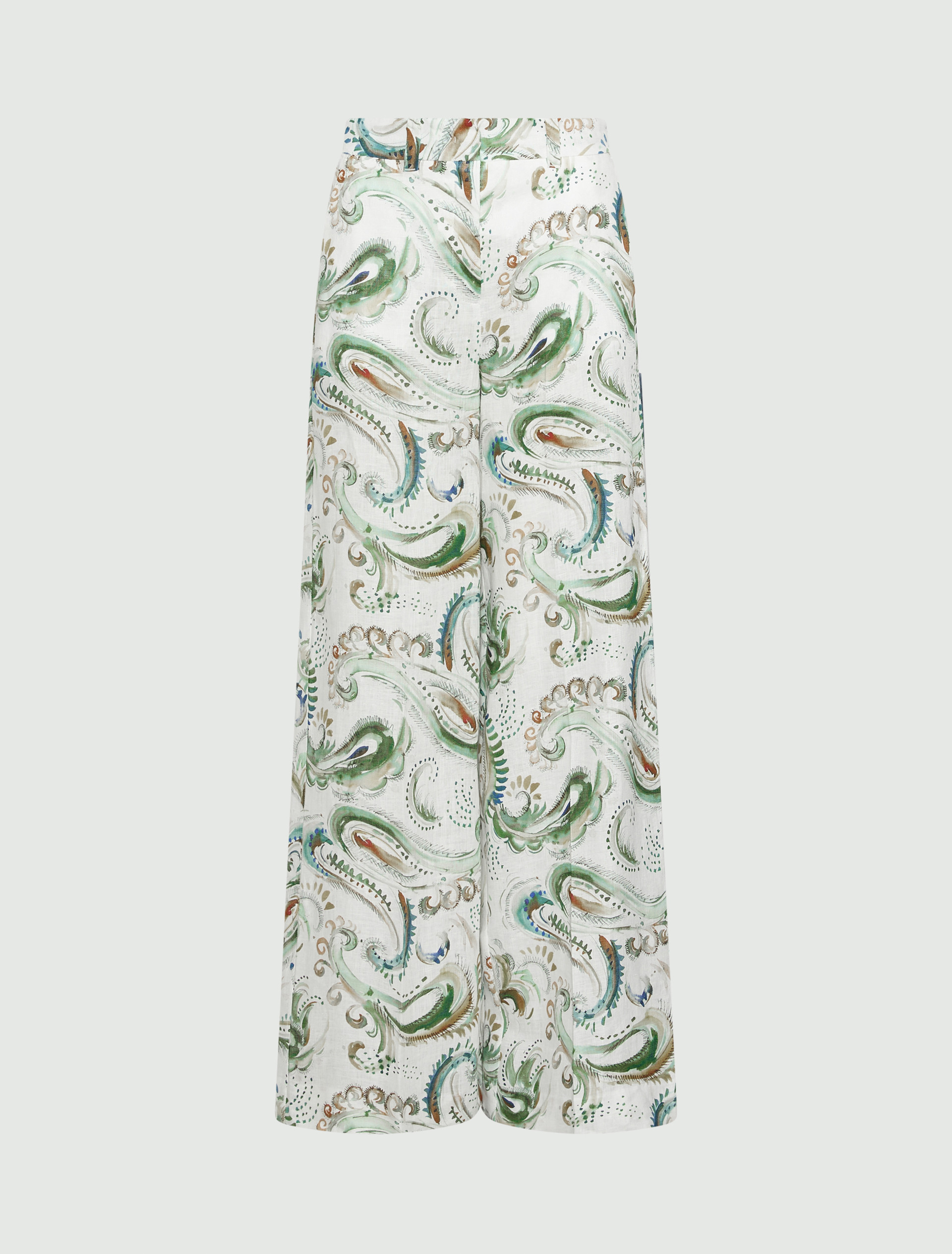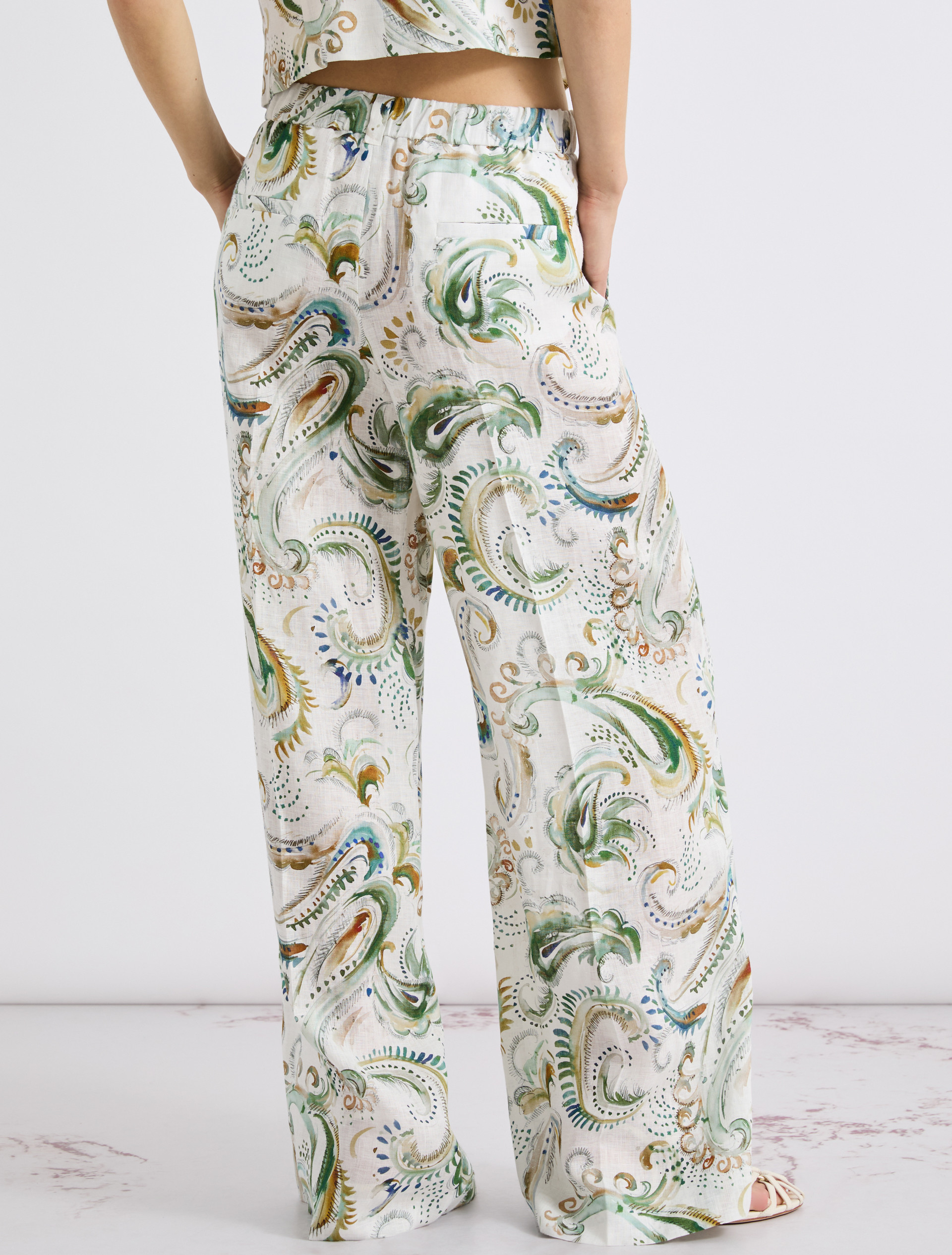 Spodnie typu palazzo z lnu - OPTYCZNY BIAŁY