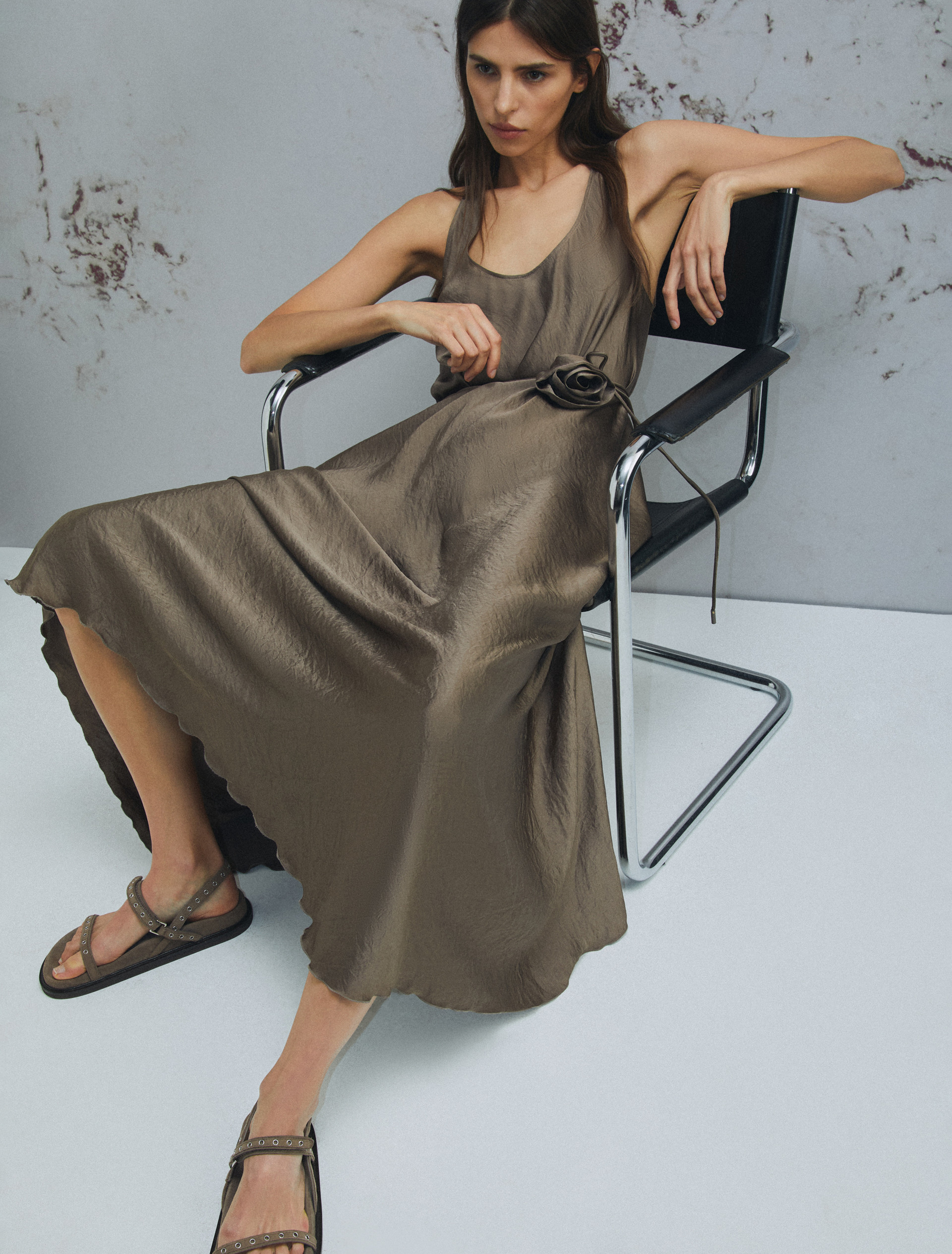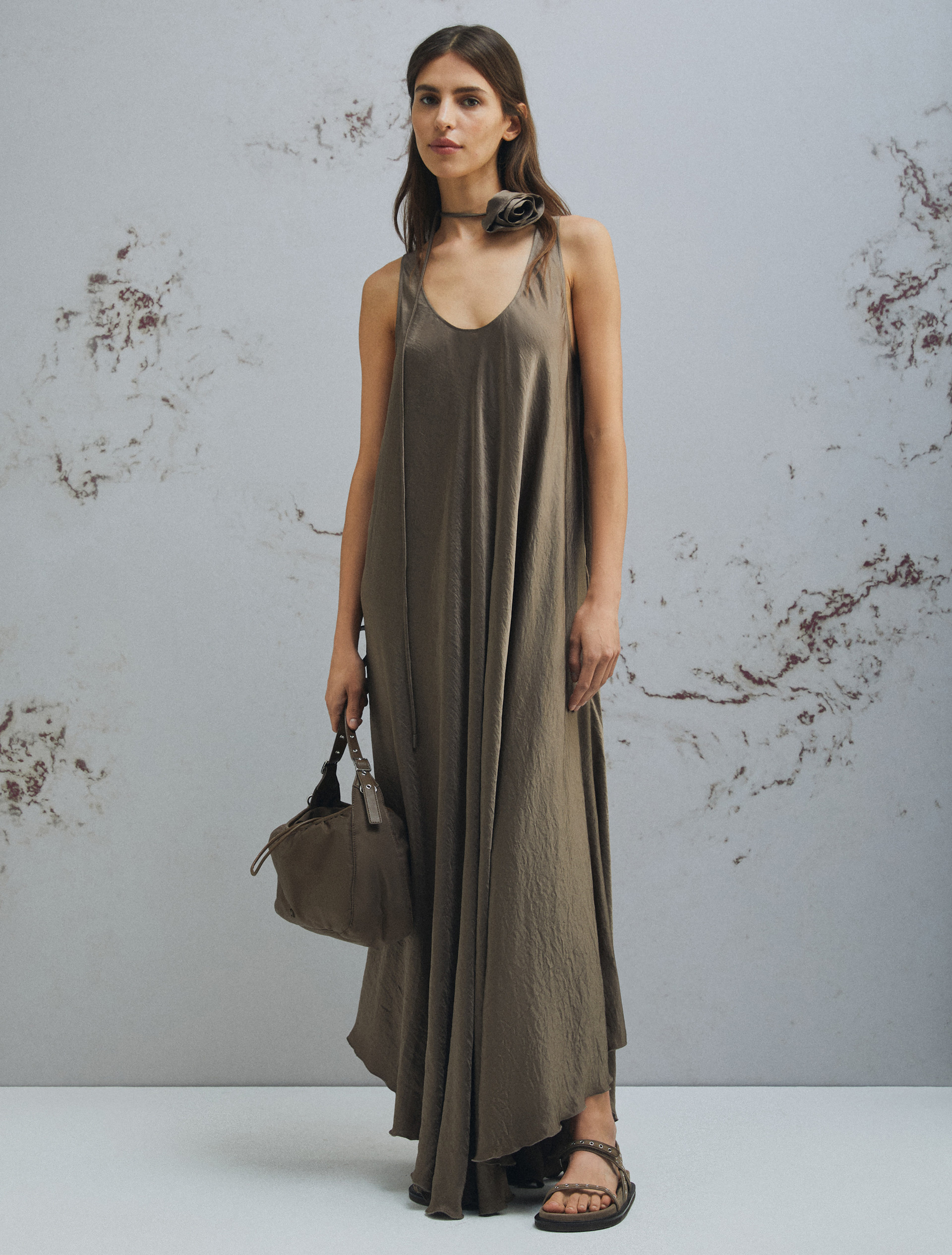 Sukienka z gniecionego twillu - BRĄZOWY