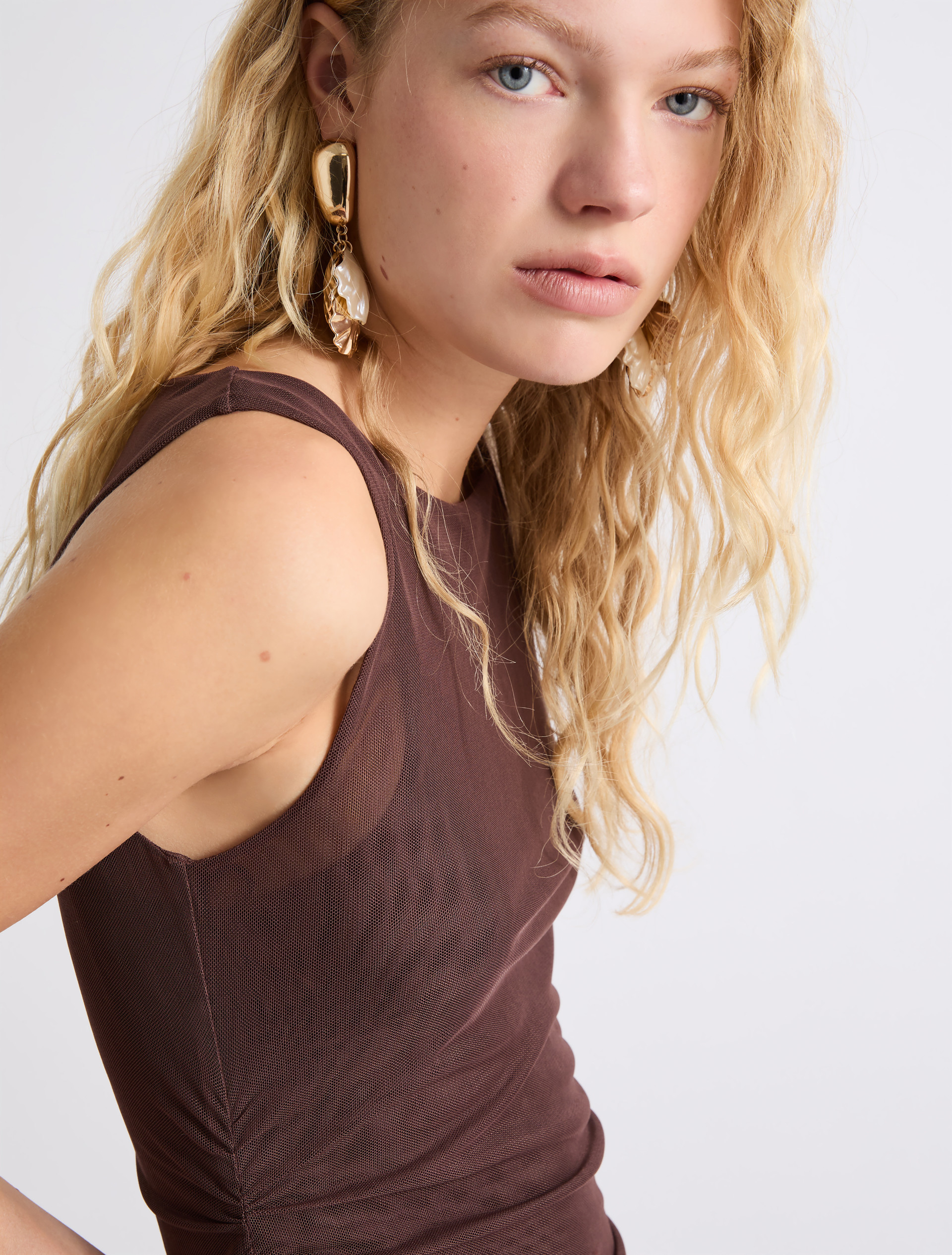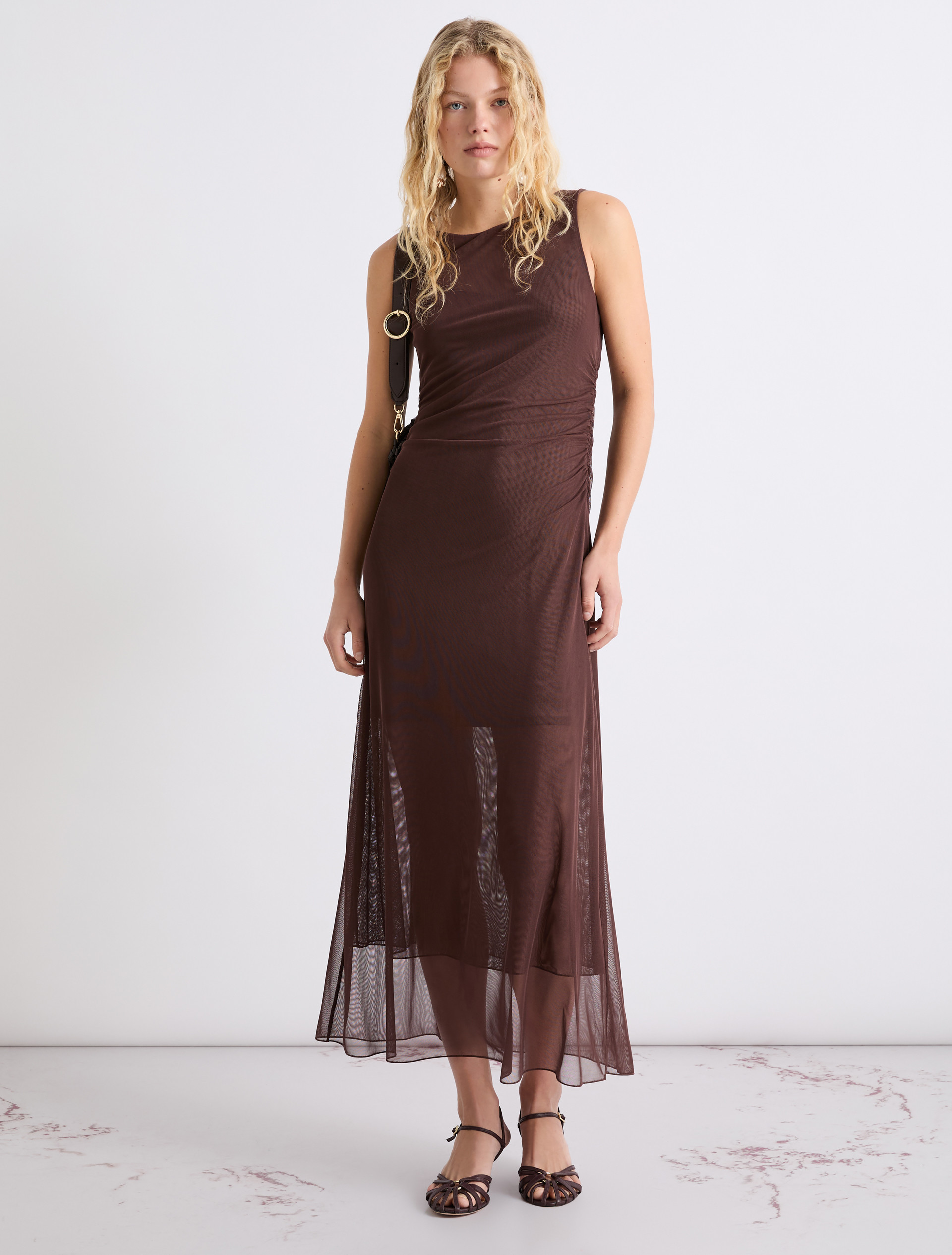 Sukienka z tiulu z podszewką - BRĄZOWY
