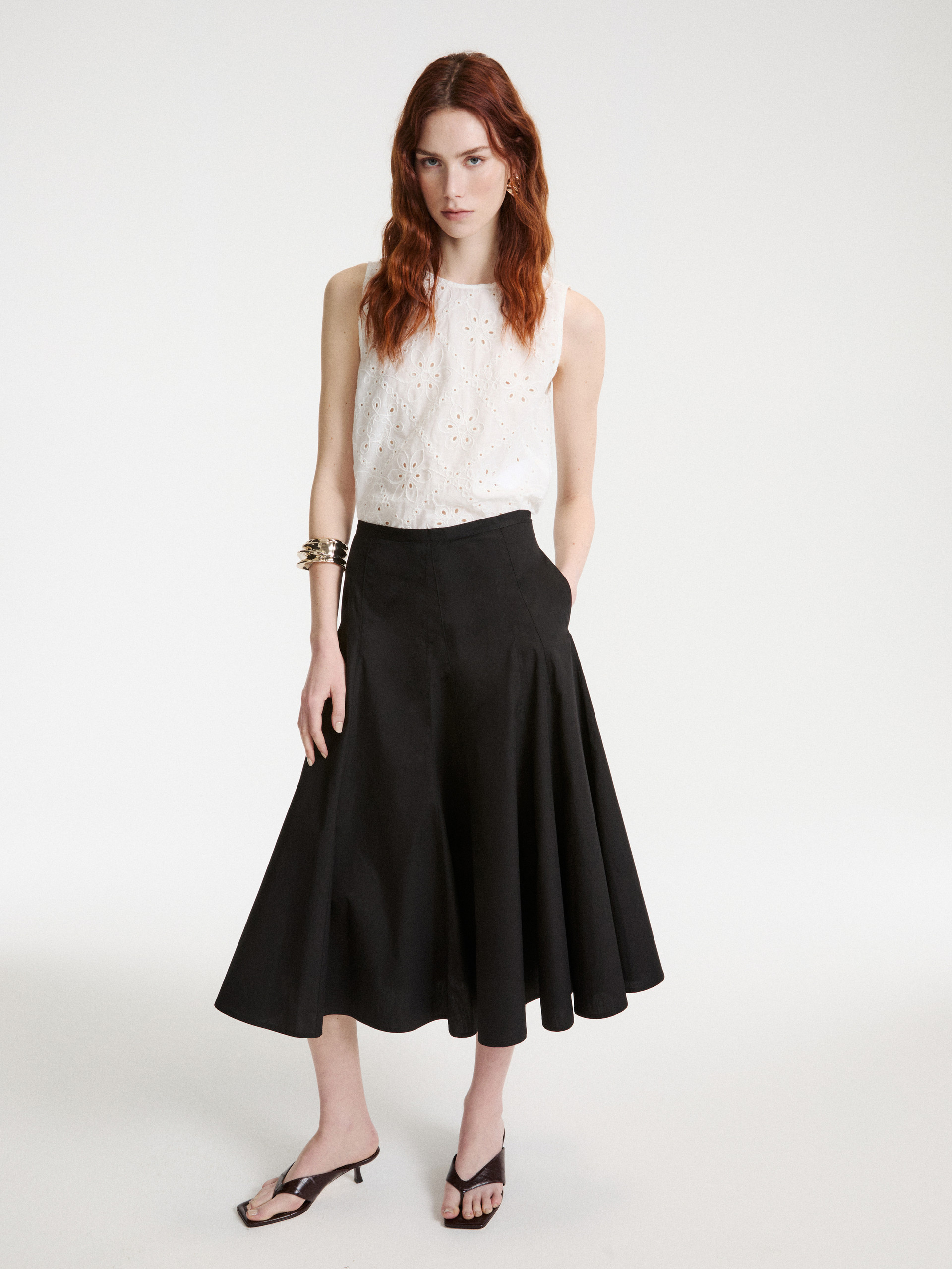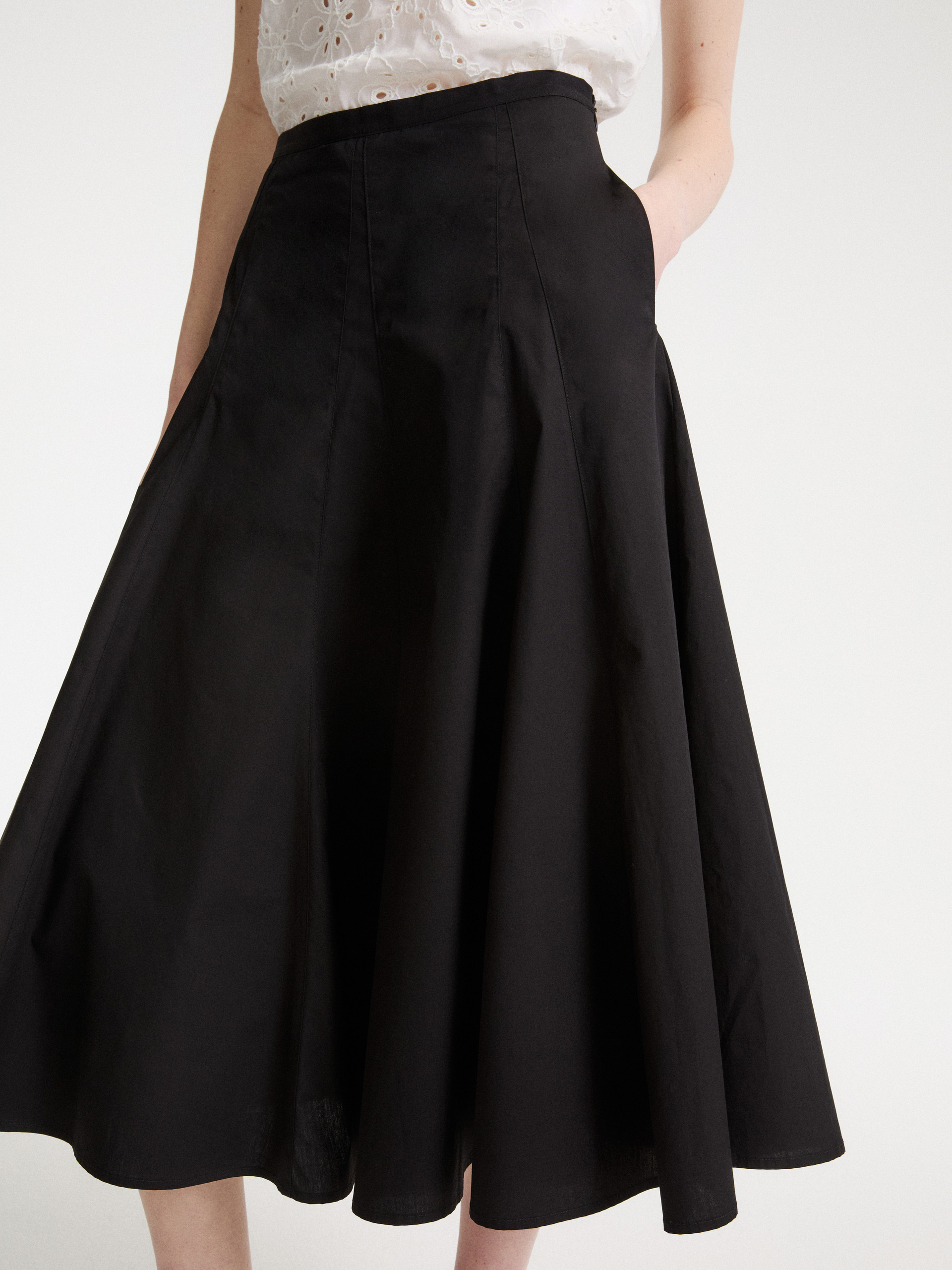 Rozkloszowana popelinowa spódnica - Czarny