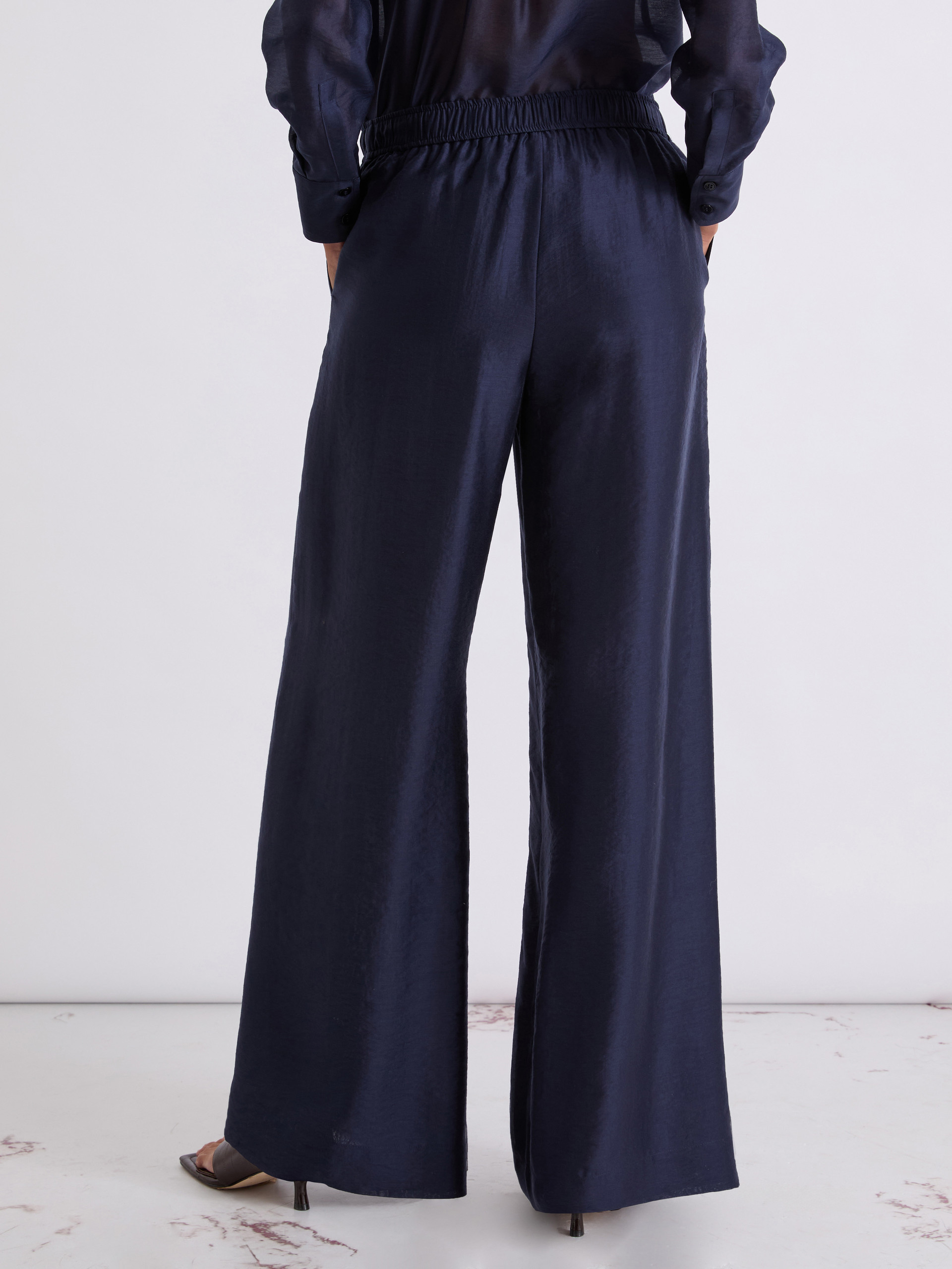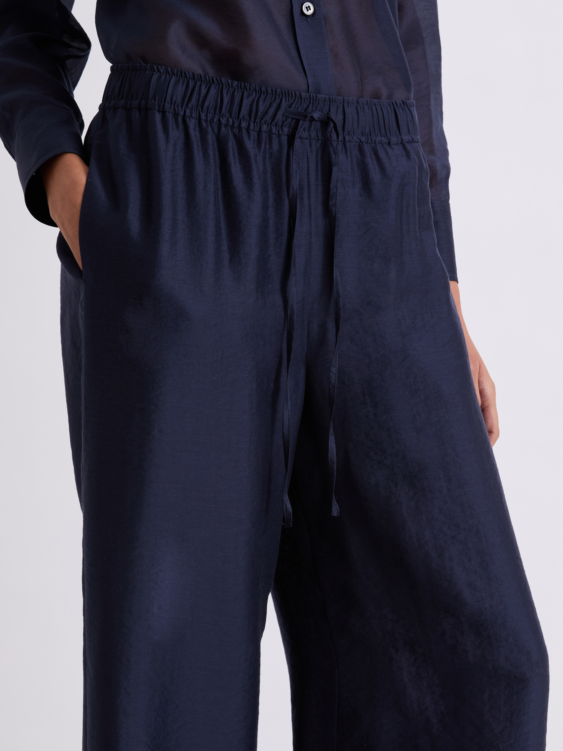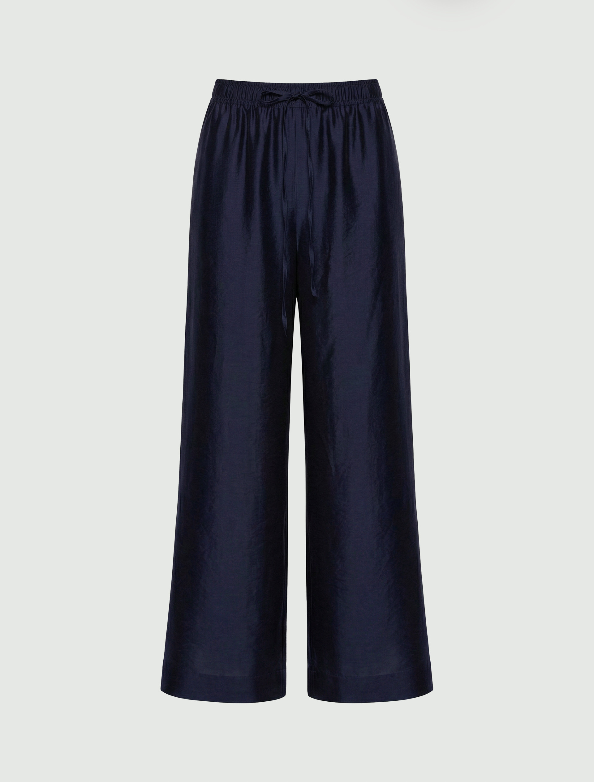 Organdynowe spodnie z szeroką nogawką - CIEMNOGRANATOWY
